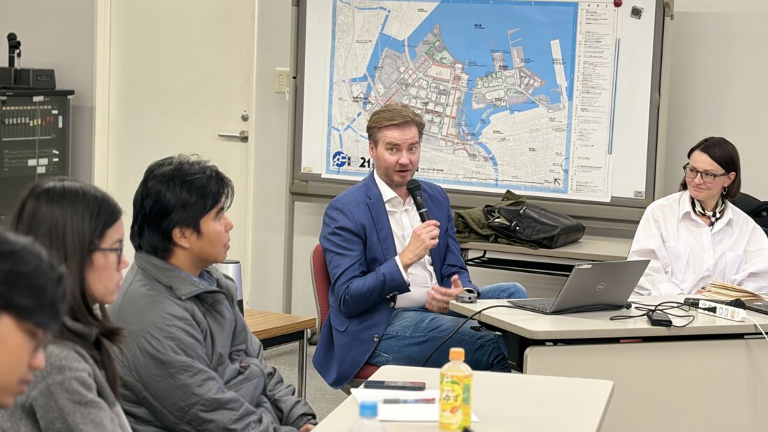 On December 4, 2025, Yokohama Future Organization hosted an international dialogue session titled “SOCIETY AND CITY IN OUR FUTURE – An Exploration with Researchers in Finland” at the Yokohama Minato Mirai 21 Presentation Room. Two leading researchers from VTT Technical Research Centre of Finland shared their expertise on future-oriented urban planning with participants including researchers, government officials, students, and business representatives.
