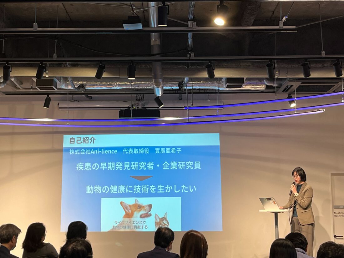株式会社Ani-lience様は、動物の疾患を早期に発見する技術を紹介。「病気になる前に守る」という新たな価値提供の可能性を示し、ヘルスケア領域における共創の広がりを感じさせる内容となりました。